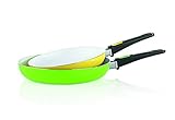 Keramikpfannen mit abnehmbarem Griff helfen nicht nur, das unangenehme Anbrennen zu vermeiden, sondern sie sind auch ganz besonders schnell und leicht zu reinigen. Keramikpfannen sind im Gegensatz zur mit Teflon beschichteten Pfanne mit einer speziellen Keramikbeschichtung ausgekleidet. Die ausgesprochen langlebige Keramikbeschichtung sorgt für hervorragende Bratergebnisse, ist kratzfest und die Anti-Haft Eigenschaften sind außergewöhnlich gut, wie es von einer beschichteten Bratpfanne erwartet werden kann. Aber das herausragende Merkmal der Keramikpfanne mit abnehmbarem Griff ist ihre im Vergleich zur Kunststoff beschichteten Pfanne extreme Hitzebeständigkeit. Sie kann bis auf 400 Grad C erhitzt werden.
