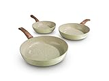 Keramikpfannen mit abnehmbarem Griff helfen nicht nur, das unangenehme Anbrennen zu vermeiden, sondern sie sind auch ganz besonders schnell und leicht zu reinigen. Keramikpfannen sind im Gegensatz zur mit Teflon beschichteten Pfanne mit einer speziellen Keramikbeschichtung ausgekleidet. Die ausgesprochen langlebige Keramikbeschichtung sorgt für hervorragende Bratergebnisse, ist kratzfest und die Anti-Haft Eigenschaften sind außergewöhnlich gut, wie es von einer beschichteten Bratpfanne erwartet werden kann. Aber das herausragende Merkmal der Keramikpfanne mit abnehmbarem Griff ist ihre im Vergleich zur Kunststoff beschichteten Pfanne extreme Hitzebeständigkeit. Sie kann bis auf 400 Grad C erhitzt werden.